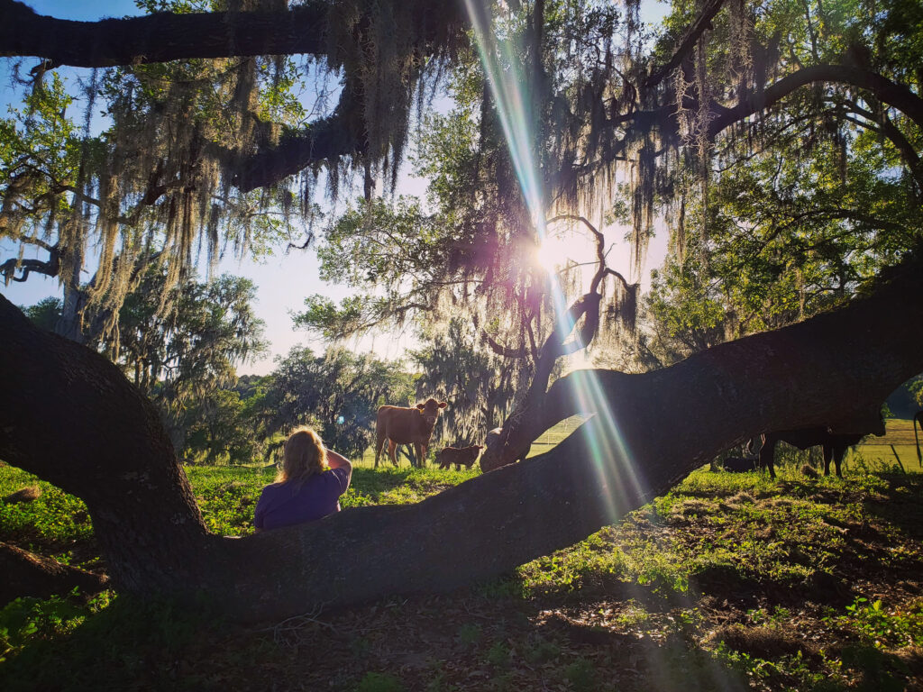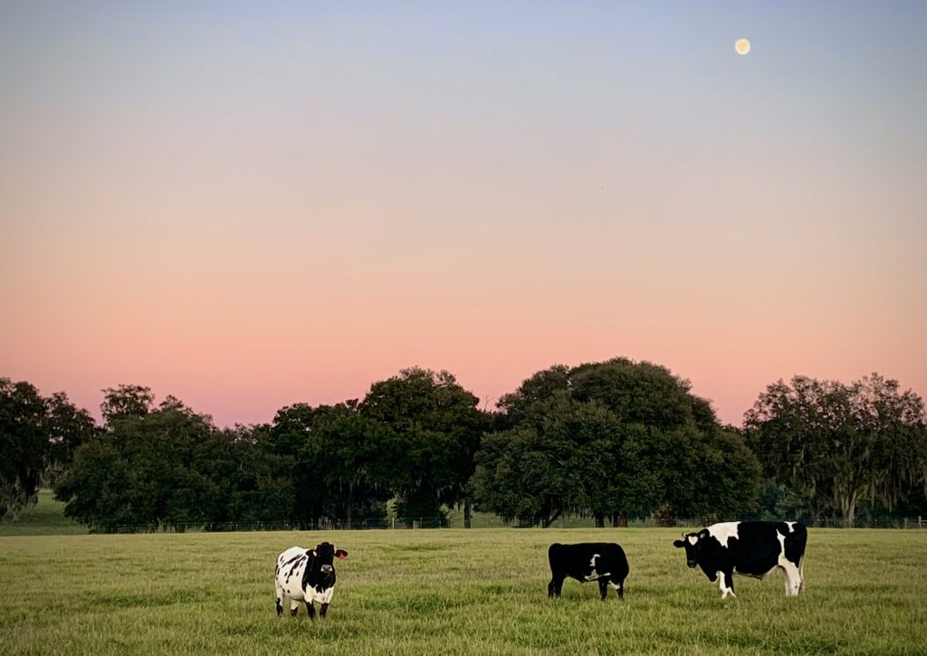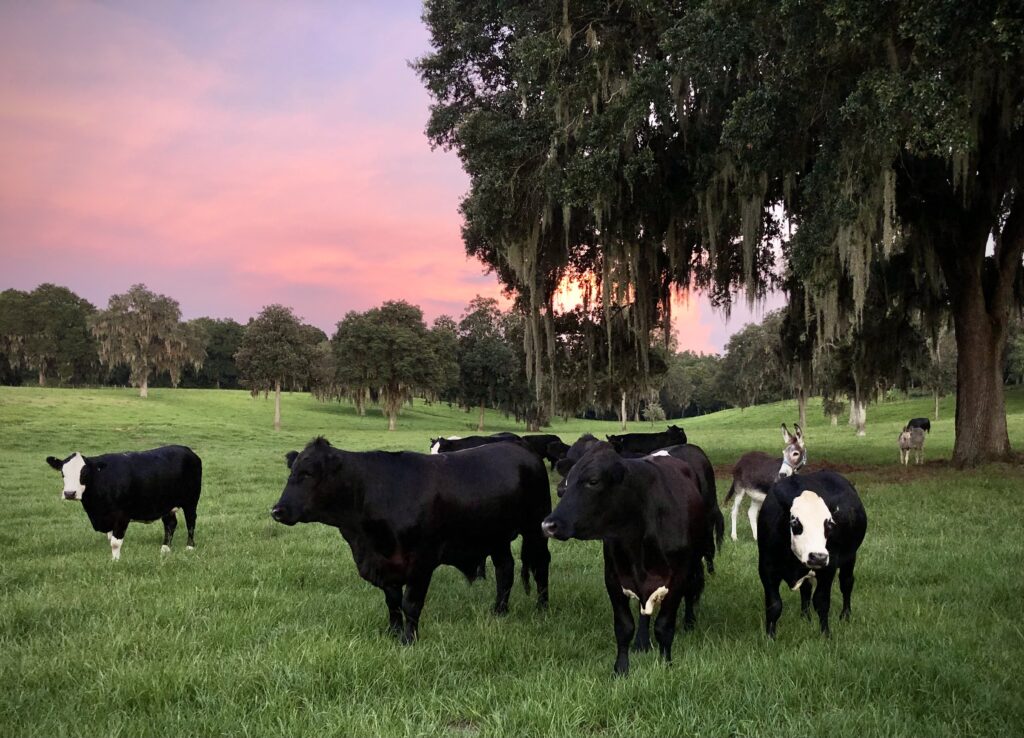 Critter Creek Farm Sanctuary is a 501(c)3 nonprofit farmed animal sanctuary, wildlife refuge, and community organization. Our mission is to foster compassion for all animals through science-based rescue, outreach, and conservation. Founded by Erin and Chris Amerman in 2016, CCFS quickly grew to become the largest bovine sanctuary in the U.S., with three facilities totaling 420 acres. The first is the original Critter Creek in Gainesville, Florida: a 210-acre farm sanctuary and wildlife preserve purchased in 2015. Approximately 125 acres of the Critter Creek facility, with its forests and natural springs, is a dedicated wildlife preserve. The remainder is set aside for rescued farmed animal residents, including pigs and cows. In 2019, we realized that if we’re going to keep this rescue thing going, well, we’re gonna need a bigger ark. So, we gave up the idea of building our dream home and instead put the money we had been saving for our dream home toward our second facility, Critter Hills, a 200-acre ranch and hay farm just up the road from Critter Creek in Alachua, Florida. This second facility has allowed us to rescue many more animals.