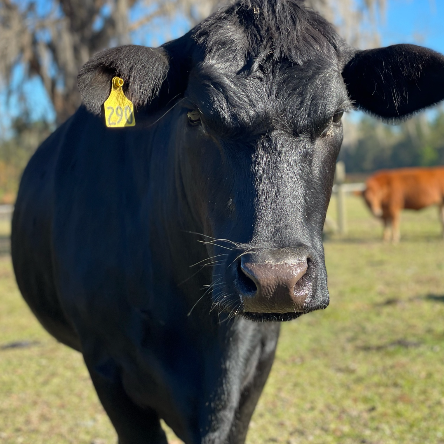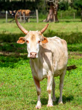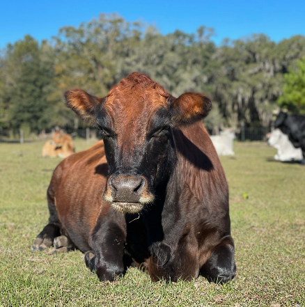 Ozzy is very smart, clearly good at figuring out how to get out of pastures, and very sweet. He loves people, loves the babies of the herd (he is one of the only males the moms will allow to babysit the kids), and absolutely adores eating palm trees. Indeed, he has destroyed many a fence trying to reach an inaccessible palm tree. You can always find Ozzy front and center for treats during moo-kets.